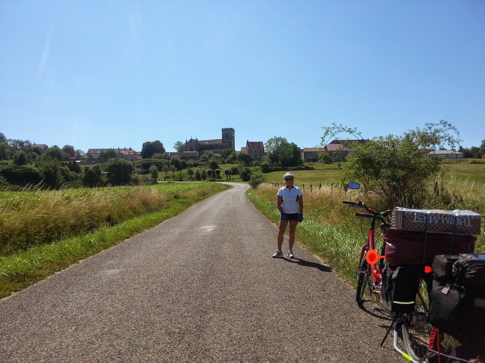 431 km de paysages superbes aussi bien sur la Coulée Verte de Belfort, sur l'Eurovélo 6 et la campagne franc comtoise... nous n'avons qu'une hâte, c'est repartir au plus vite... après avoir régler les problèmes techniques rencontrés, à savoir une tente plus spacieuse et étanche, des matelas de qualités, des sacoches sur la roue avant pour équilibrer le poids sur le tandem, un jour de repos compensateur et le... coussin de Sonia
